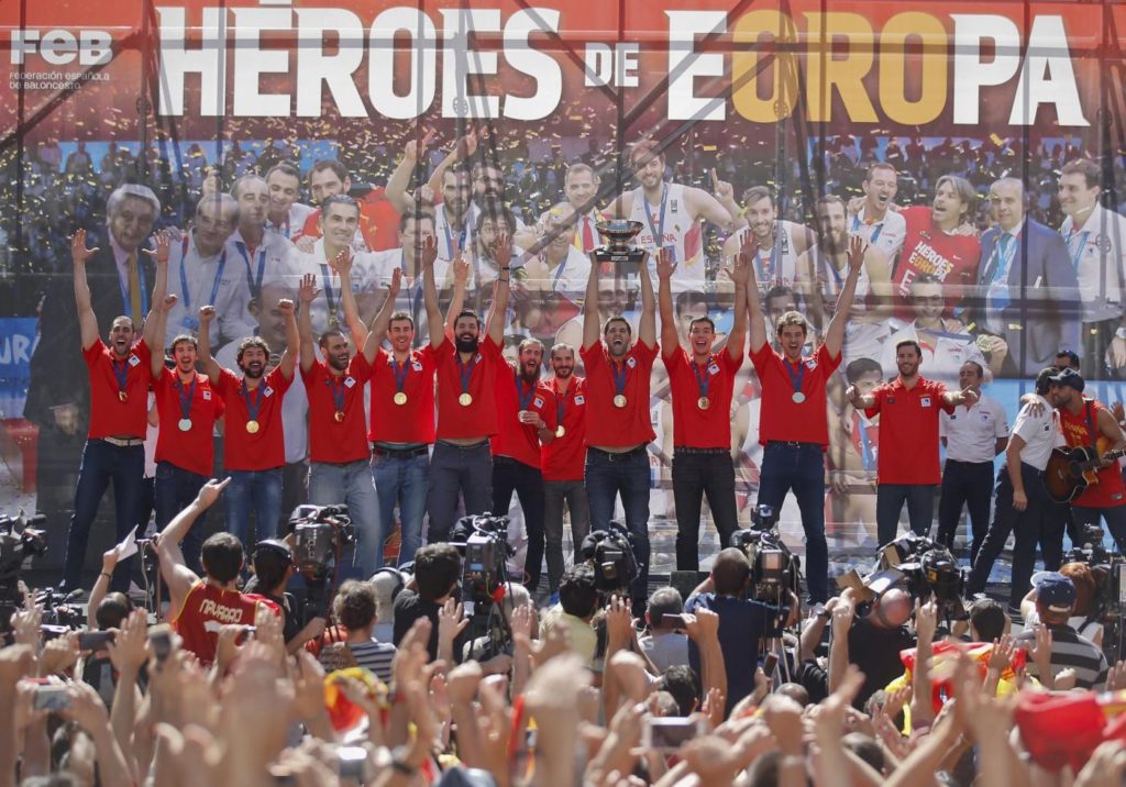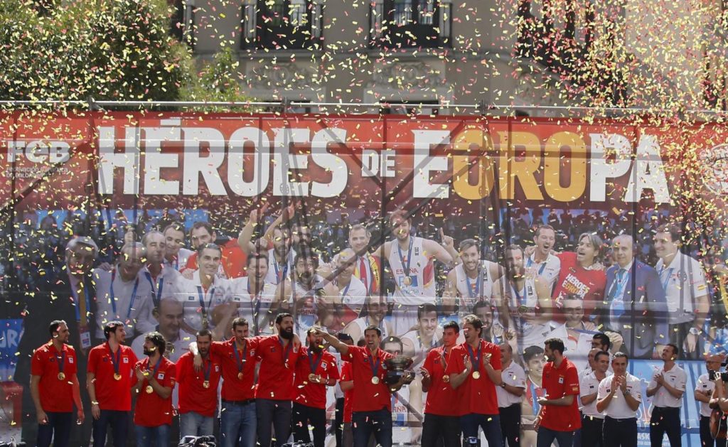 La nazionale di basket spagnola è stata celebrata a Madrid dopo la vittoria ai Campionati Europei in Francia. La Spagna si è laureata campione d’Europa per la terza volta trascinata dal 35enne Pau Gasol nominato MVP del torneo. La vittoria francese ha aiutato a cancellare la delusione patita dagli spagnoli l’anno scorso quando vennero eliminati nei quarti di finale ai Mondiali disputati in casa. Arrivati a Madrid a mezzogiorno, la squadra e l’allenatore italiano Sergio Scariolo hanno incontrato il primo ministro, Mariano Rajoy nella sua residenza ufficiale e poi hanno svilato in Plaza de Callao nel centro di Madrid. Rajoy ha detto che il team ha reso “milioni di persone felici senza chiedere nulla in cambio”. Nonostante fosse una giornata lavorativa, le strade e la piazza di Madrid sono state affollate da migliaia di appassionati pronti a salutare i loro eroi e per festeggiare un risultato che conferma la qualità di una generazione di campioni straordinaria.