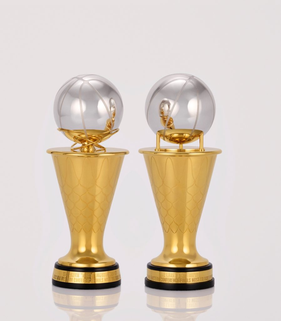Il rapporto della NBA con Tiffany & Co. dura da 45 anni, con la casa di lusso americana coinvolta nella progettazione e produzione del Larry O’Brien Trophy dal 1977, dei trofei assegnati ai vincitori dei campionati di Conference dal 2001 e infine, dal 2005, del Bill Russell Trophy (assegnato al MVP delle NBA Finals).