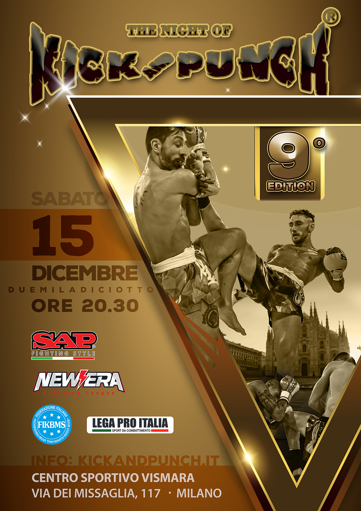 Anche i guerrieri della boxe thailandese saranno protagonisti sabato 15 dicembre alla The Night of Kick and Punch 9, organizzata da Angelo Valente e dalla Sap Fighting Style al centro sportivo Vismara di Milano e presentata da Elisabetta Canalis Quattro pesi leggeri (60 kg) ben noti al pubblico milanese – perché si allenano nelle palestre meneghine oppure hanno combattuto a Milano – si affronteranno per la gioia dei loro tifosi: Alex Avogadro, Ryan Castiglioni, Viorel Vintu e Pawel Szymansky. Combatteranno sulla distanza delle 3 riprese da 3 minuti ciascuna. “I combattimenti del 15 dicembre sono la prima fase di un torneo denominato New Era – spiega Angelo Valente – che prevede altre due tappe: a Milano nel corso della manifestazione Ring Rules (promossa da Stefano Stradella) ed a Seregno nel corso del galà La notte dei campioni (organizzato da Luca Leva).