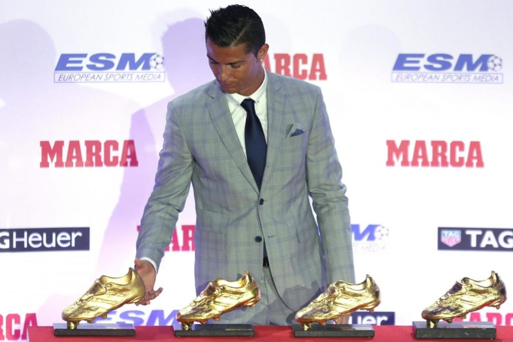 Se Leo Messi ha vinto più Palloni d’oro, da oggi Cristiano Ronaldo può vantare un numero maggiore di Scarpe d’oro rispetto al rivale: il portoghese oggi ha ricevuto la sua quarta Scarpa d’oro, mentre Messi è fermo a 3, riconoscimento riservato al miglior cannoniere dei più importanti campionati europei.