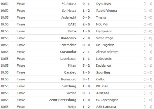 Di seguito i risultati delle partite di Europa League della 5ª giornata: