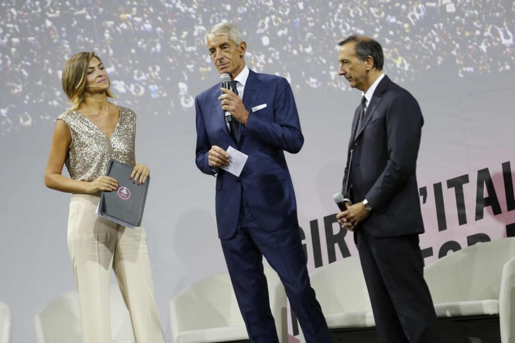 Expo Milano è stato oggi il teatro della presentazione del Giro d’Italia 2016. La corsa a tappe più importante dello stivale prenderà il via venerdì 6 maggio dalla città olandese di Apeldoorn per poi concludersi a Torino il 29 maggio. La cerimonia è stata affidata alla conduttrice Cristina Chiabotto che ha accolto sul palco tutti gli illustri ospiti presenti in sala, tra cui Brian Cookson presidente dell’Uci. Di seguito tutte le immagini del pomeriggio milanese dedicato alla massima espressione del ciclismo italiano.