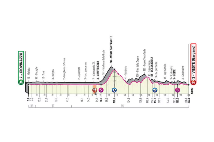 Il Giro d’Italia è arrivato all’ottava tappa del proprio percorso, dopo aver regalato emozioni in serie dalla Sicilia fino alla Puglia. La frazione in programma oggi, caratterizzata da 200 km che collegano Giovinazzo a Vieste, è mista con la prima parte sostanzialmente pianeggiante seguita dalla seconda molto più impegnativa sul Gargano.