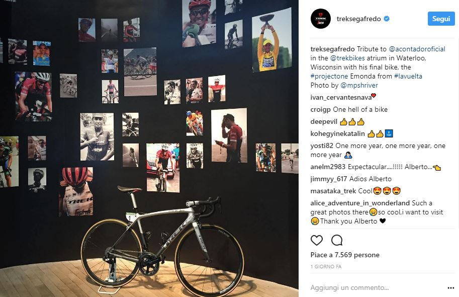 Il team sarà visionato dai manager della Trek Segafredo che valuteranno tutte le corse che i ciclisti della squadra faranno nella stagione 2018. Alberto Contador in questa stagione ha vinto solo una tappa, ma nella prima parte di stagione ha combattuto alla pari con Alejandro Valverde, ciclista della Movistar. Il legame tra Alberto Contador e la Trek Segafredo è sempre più stretto, infatti la squadra ha dedicato un atrio a Waterloo, nel Wisconsin, dove sono custodite alcune foto che ritraggono con la squadra e soprattutto l’Emonda usata alla Vuelta di Spagna. Nel telaio della bicicletta, Alberto Contador ha scritto: “per i miei amici e la mia famiglia per i sogni che ho realizzato”.