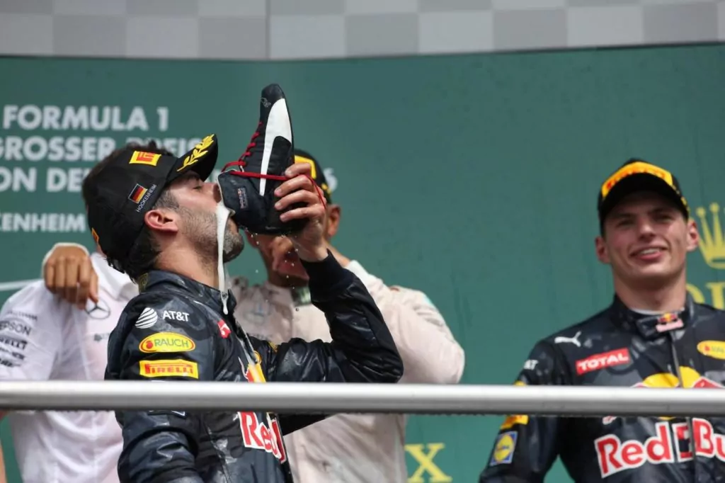 Sono le due Red Bull di Ricciardo e Verstappen a salire sul podio insieme al campione del mondo, con il pilota australiano che decide di sorprendere tutti con un siparietto davvero tutto da ridere. Dopo aver ricevuto la coppa per il secondo posto, Ricciardo si toglie la scarpa, ci versa dentro lo champagne e comincia a sorseggiare tra lo stupore del pubblico. Un comportamento singolare che lo stesso Ricciardo spiega ai microfoni di Sky Sport: “è una tradizione dei piloti australiani, se ricordate lo ha fatto anche Jack Miller dopo aver vinto ad Assen. Gli avevo promesso che lo avrei fatto anche io non appena avessi vinto una gara, ma il podio di oggi nel mio centesimo Gp, mi ha convinto a farlo”.