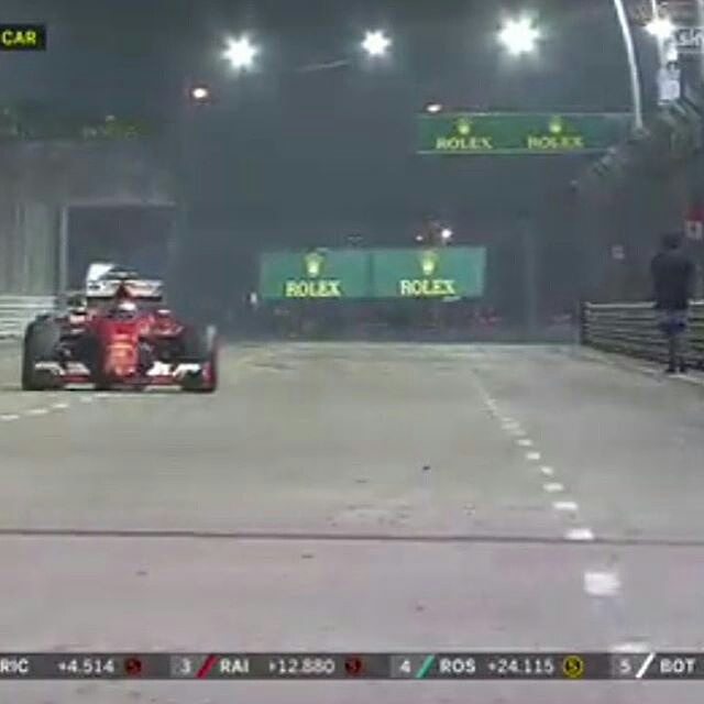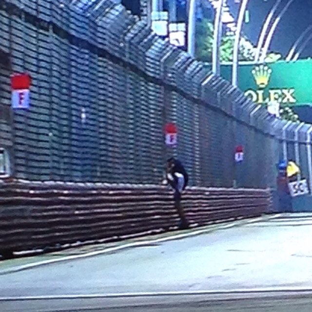 Incredibile fuori programma nel Gp di Singapore al 38/o giro. La gara viene neutralizzata con l’ingresso della safety-car a causa dell’ingresso in pista di una persona, presumibilmente uno spettatore che ha passeggiato per alcuni metri a bordo pista prima di tornare a scavalcare il guard rail per uscire dal tracciato. Tutte le vetture ne approfittano per cambiare le gomme. Non si sa ancora se e quali provvedimenti sono stati presi nei confronti di quest’uomo e soprattutto come abbia fatto ad entrare in pista.