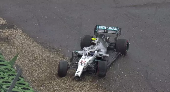 Il finlandese ha perso il controllo della sua monoposto ed è finito fuori pista, andando a sbattere contro le barriere e dicendo addio ad ogni possibilità di podio, distruggendo la sua Mercedes. Sorride dunque Hamilton, che dal fondo della classifica vede il suo compagno di squadra finire fuori pista così da non recuperare punti preziosi in classifica.