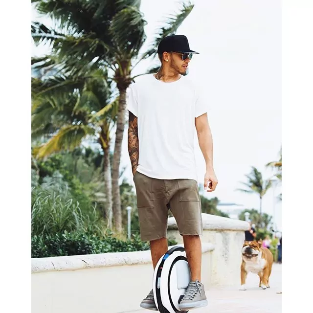 Lewis Hamilton insegue i paparazzi per le strade di Miami a bordo della sua airwheel