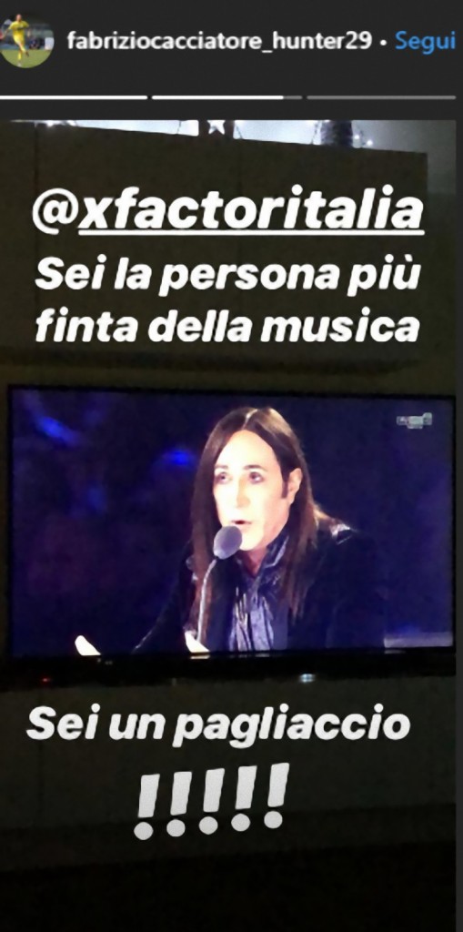 Fabrizio Cacciatore, difensore del Chievo Verona, è un appassionato di musica ed anche del programma Sky “X Factor”. Come un semplice telespettatore, il calciatore ha commentato ieri sui social la puntata del programma, ma ha avuto commenti molto duri nei confronti di Manuel Agnelli, uno dei giudici della competizione canora. “Sei la persona più falsa della musica, sei un pagliaccio! Sei un finto puoi girare solo la famiglia Adams“. Di certo ci è andato giù pesante Cacciatore…