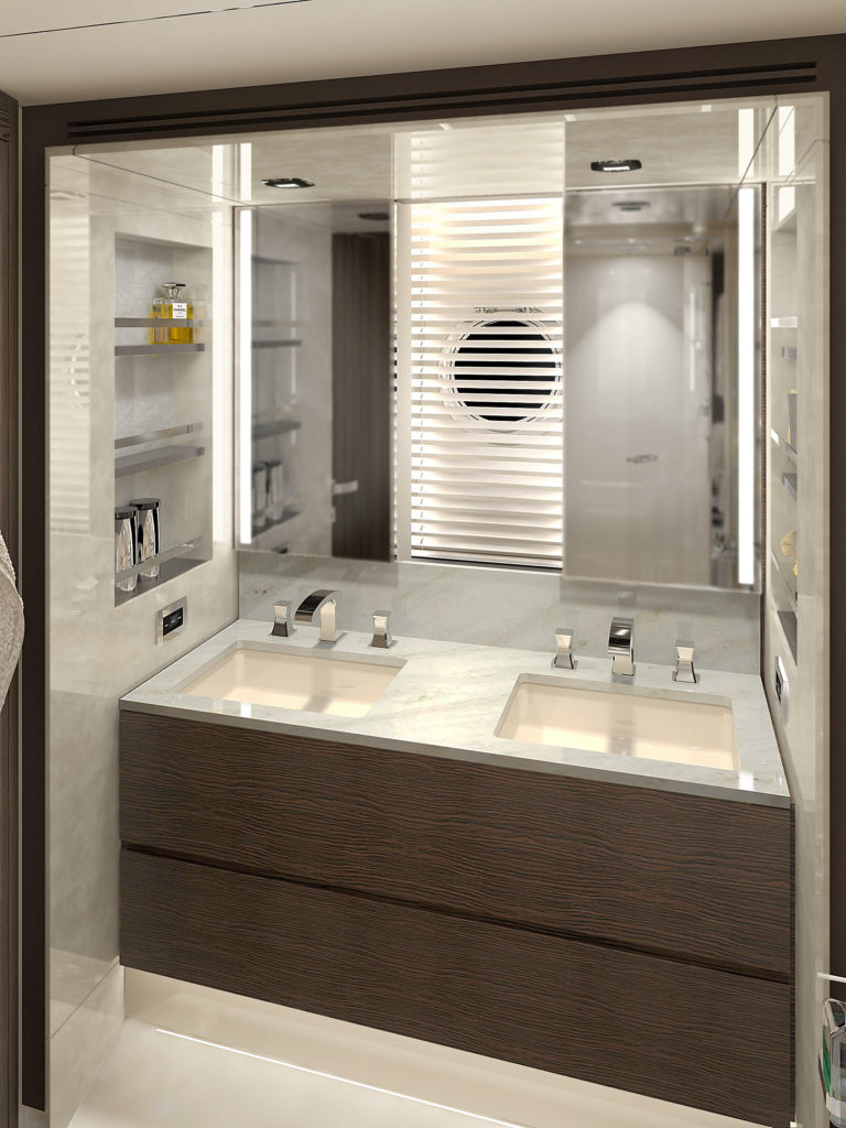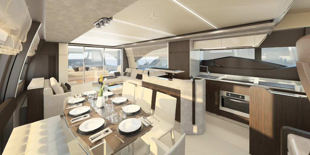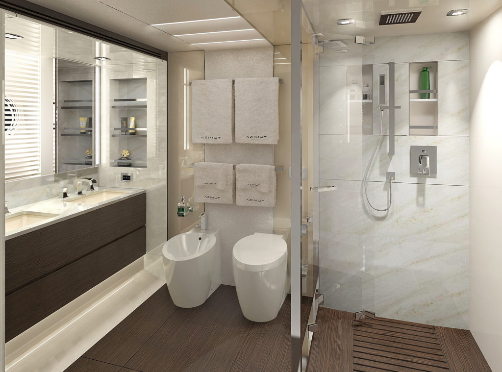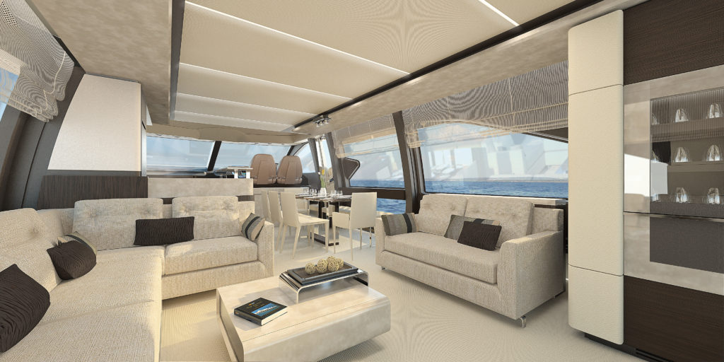 Il nuovo Azimut 72 è stato progettato e costruito interamente nel cantiere di Avigliana in collaborazione con Stefano Righini, che ha sviluppato il concept generale del modello oltre che lo stile degli esterni e con Carlo Galeazzi che ha curato il design degli interni. Come ogni altro modello firmato Azimut Yachts anche il 72 ha l’obiettivo dichiarato di rappresentare il riferimento nel proprio segmento per volumetria, razionalità degli spazi, eleganza e performance. Sono stati soprattutto due elementi a guidare il progetto: il rispetto delle proporzioni e le tecniche costruttive innovative per ottenere esterni sportivi senza limitare in alcun modo il volume degli interni.