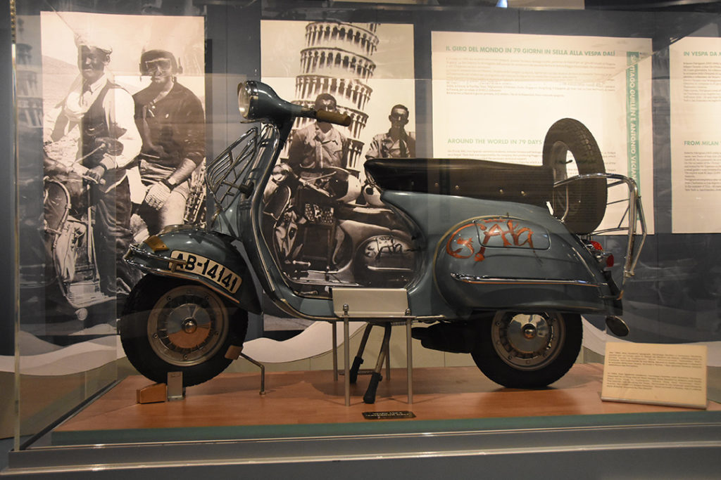 Per celebrare nel migliore die modi i 70 anni della Vespa, la Fondazione Piaggio ha deciso di realizzare una speciale mostra dedicata allo scooter più venduto del mondo e ai suoi viaggi. Battezzata con l’evocativo nome “ In Viaggio con Vespa ”, l’esposizione ci permette di apprezzare i mezzi e le storie dei globetrotter che hanno affrontato lunghissimi ed incredibili viaggi in tutto il globo in sella alle loro Vespa.