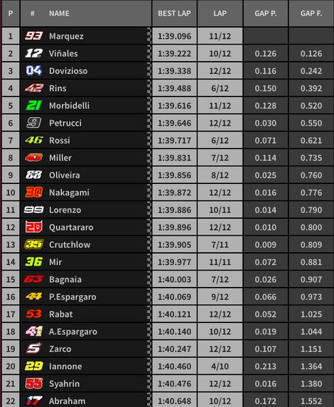Tutto pronto per la seconda gara della stagione di MotoGp. Sfrecciano i piloti della classe regina sul circuito di Termas de Rio Hondo per il classico warm up, ultimo step per studiare la pista in vista della gara di questa sera. Dopo essersi preso la pole position nella giornata di ieri, Marc Marquez si conferma il più veloce anche nel warm up di quest’oggi (1:39.096): chiaro segnale agli altri piloti in vista del Gp d’Argentina. Secondo posto per Vinales, terzo Dovizioso, come già accaduto ieri nelle qualifiche. Settimo posto per Valentino Rossi.