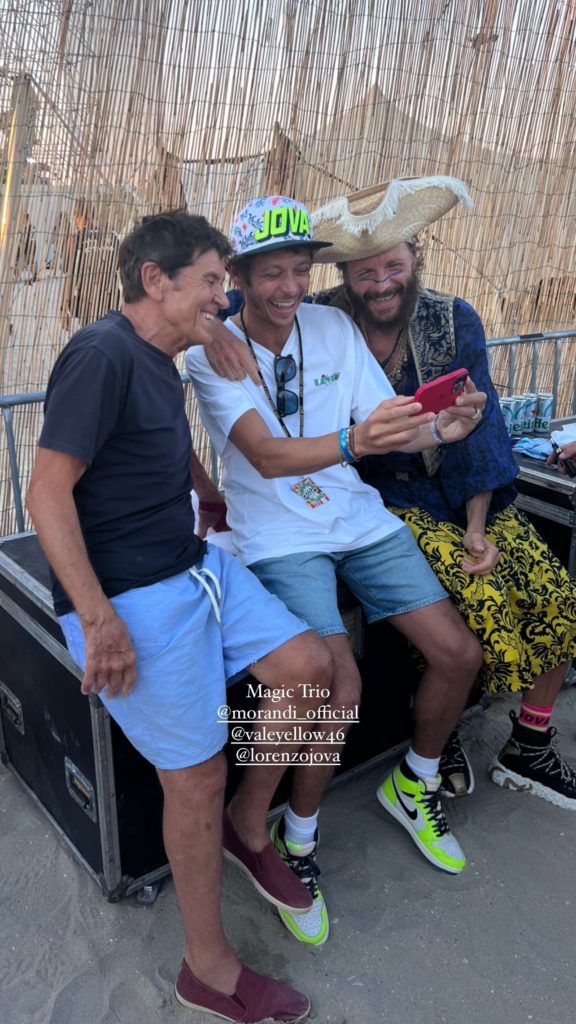 Con Jovanotti, sul palco, è salito anche Gianni Morandi. Ma a salutare il pubblico di Lido di Fermo non sono state solo stelle del panorama musicale, ma anche di quello sportivo: nella tappa di ieri del tour di Jovanotti, infatti, era presente anche il suo grande amico e campione Valentino Rossi.