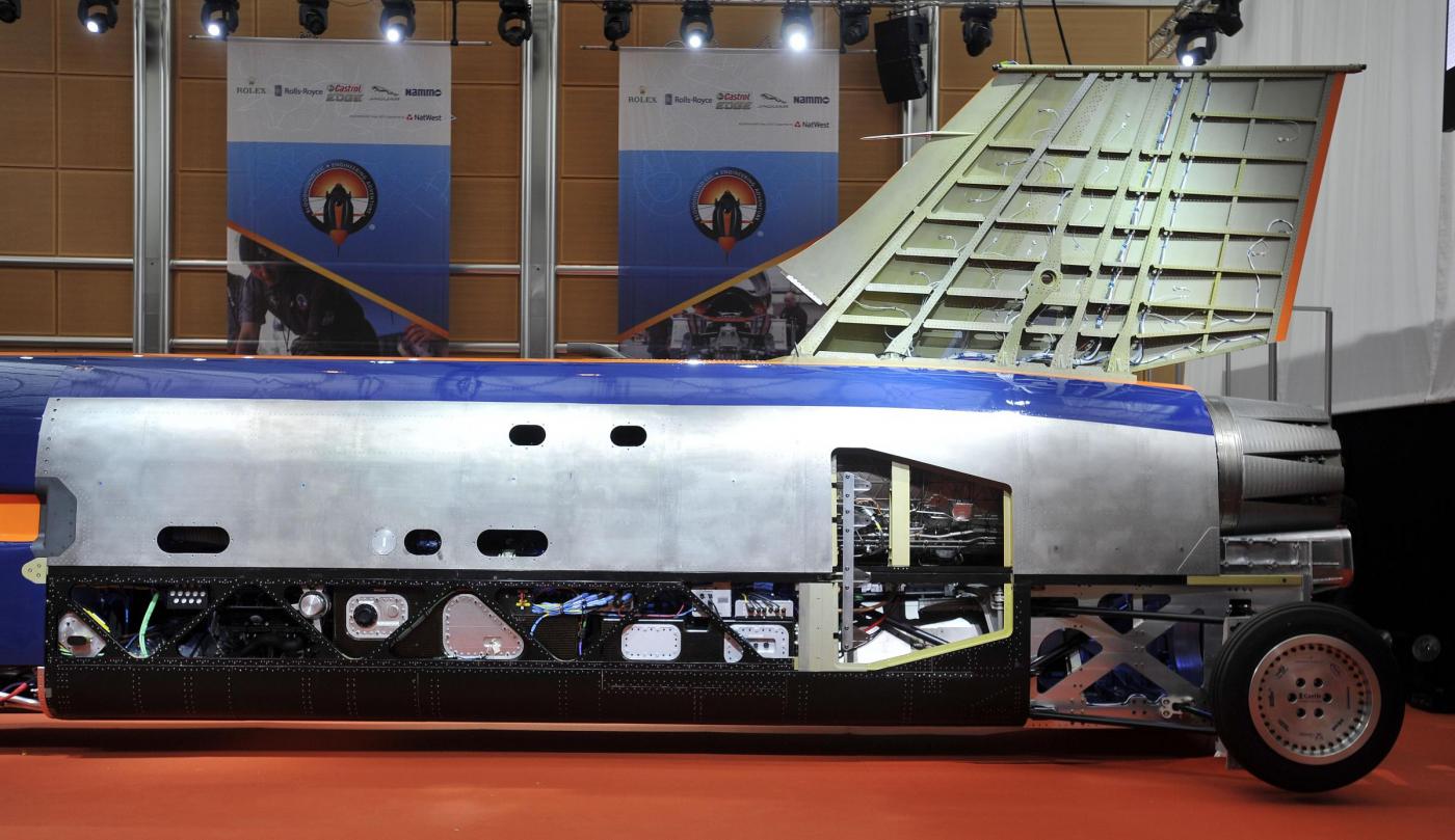 Caratterizzato dalle forme di un missile gigante, il Bloodhound SSC sfrutta un propulsore supersonico Rolls-Royce EJ200 preso in prestito dal mondo aeronautico. Questa unità è in grado di sviluppare l’incredibile potenza di ben 135.000 CV e – almeno teoricamente – di spingere questo straordinario veicolo fino ad una velocità di 1.610 km/h. Per frenare la “furia” velocistica del Bloodhound verranno utilizzati tre sistemi di frenata completamente indipendenti e in caso di necessità il veicolo può vantare la presenza di sette estintori.