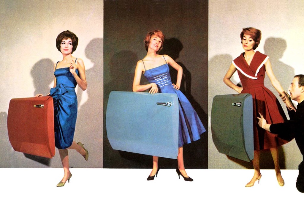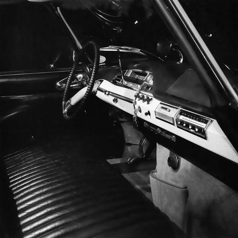 Per la realizzazione dei cataloghi della DS, lo stilista confeziono? una serie di abiti utilizzando i tessuti dei rivestimenti interni della vettura e fotografo? giovani modelle cosi? abbigliate in posa accanto ad una portiera posteriore della DS19. Con queste meravigliose immagini, i cataloghi mostravano cosi? alcune tra le innumerevoli combinazioni possibili tra le tinte dei rivestimenti interni, della carrozzeria e del tetto dell’ammiraglia francese.