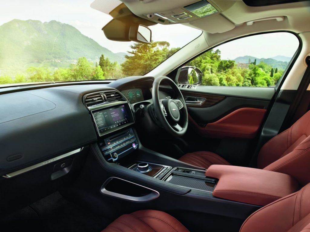 L’abitacolo sfoggia la cura e i materiali lussuosi a cui ci ha abituato il Costruttore di Coventry : i sedili sono rifiniti in pelle grana fine Windsor, mentre l’atmosfera dell’ambiente interno può essere personalizzata con un sistema di illuminazione dotato di 10 differenti colori. Il tunnel centrale ospita la manopola a scomparsa del cambio automatico – ormai una vera e propria firma del Gruppo Jaguar-Land Rover – l’imponente console ingloba il grande schermo ”touch” da 10,2 pollici abbinato al sistema di infotainment InControl Touch Pro, mentre il pilota può usufruire della strumentazione virtuale basata su uno schermo da 12,3 pollici.
