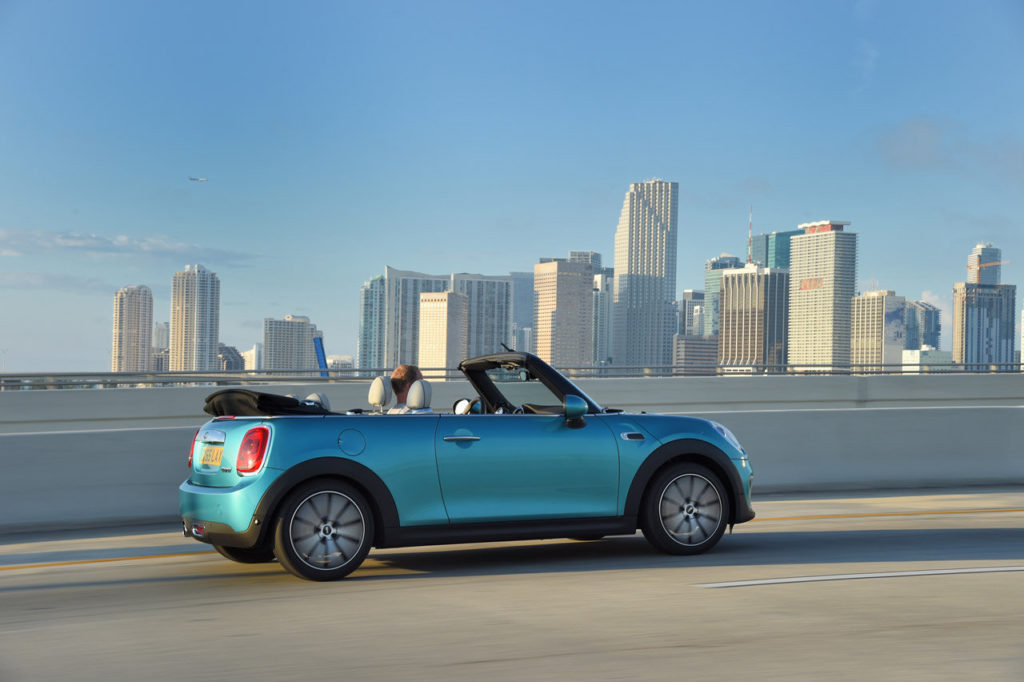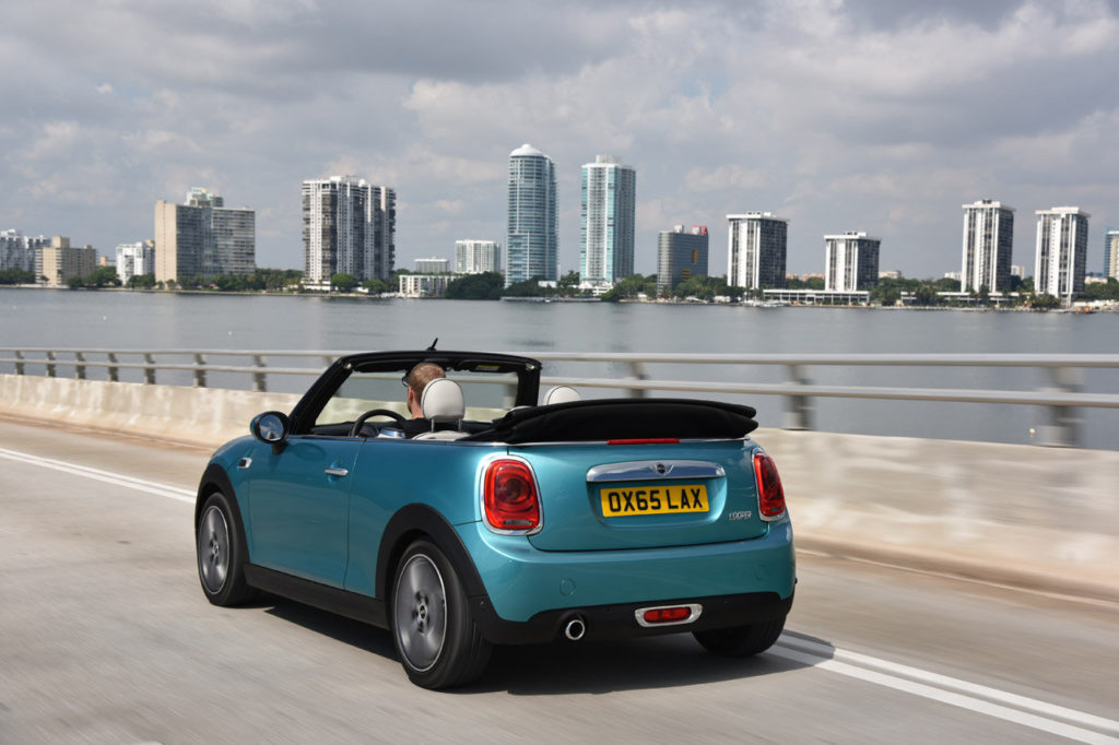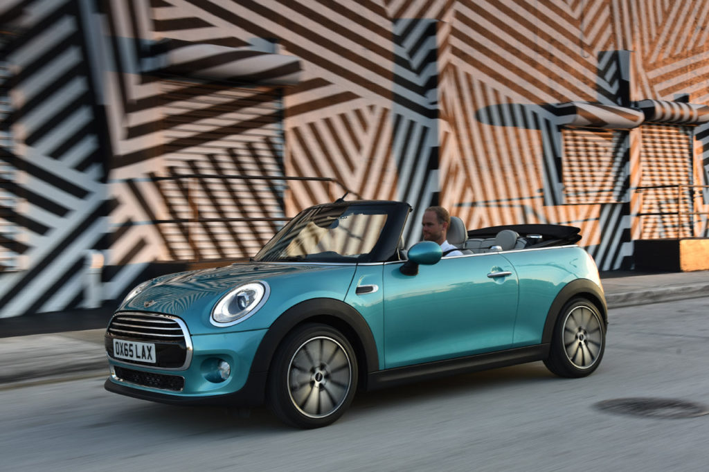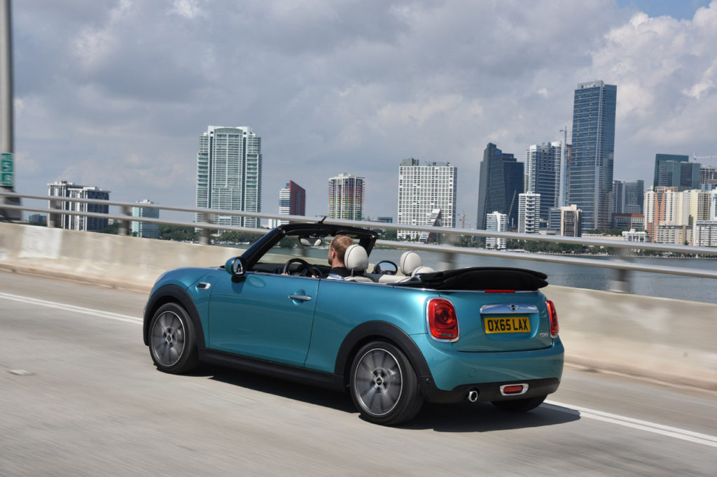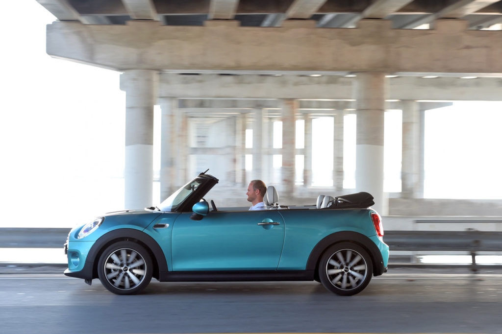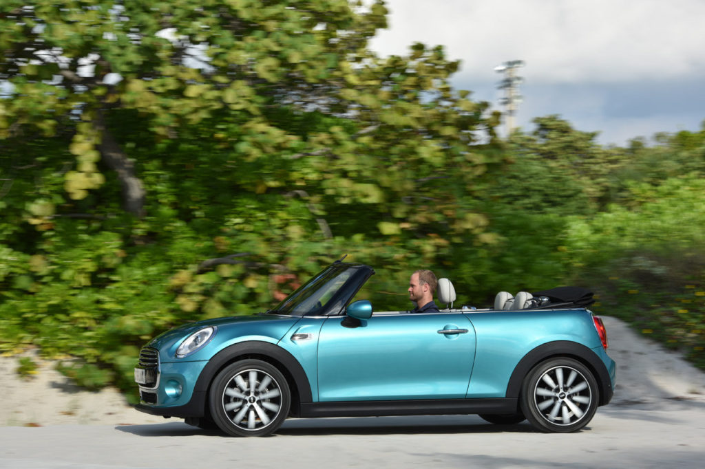 Anche il vano bagagli è più generoso ed offre 215 litri con la capote chiusa e 160 litri con la capote aperta. Quest’ultima vanta una copertura in tela multistrato che può essere impreziosita dal simbolo dell’Union Jack, oltre a vantare un azionamento elettrico che permette di aprirla o richiuderla in 18 secondi, anche in movimenti e fino ad una velocità massima di 30 km/h. La dotazione della Mini Cabrio può essere integrata da accessori di carattere premium come i rivestimenti in pelle e il sistema di riscaldamento per i sedili, il dispositivo multimediale MINI Connected e il climatizzatore bi-zona.