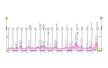Dopo il secondo giorno di riposo si riparte con un’altra tappa di montagna da Canazei a Sega di Ala (arrivo in salita inedito per il Giro). Da scalare, prima dell’ascesa finale, il Passo san Valentino. Giovedì 27 maggio, la 18^ tappa da Rovereto a Stradella. Una frazione insidiosa con diversi strappi nel finale tra le colline dell’Oltrepò Pavese. Muoverà da Abbiategrasso la tappa numero 19 che terminerà sull’Alpe di Mera in Valsesia (arrivo inedito). Questa frazione con 3.700m di dislivello comprende anche l’ascesa del Mottarone e quella della Colma di Varallo. Da Verbania partirà una tappa contrassegnata da 5 stellette di difficoltà e 4.800 m di dislivello che terminerà sull’Alpe di Motta nella Valle Spluga in Valtellina. Da scalare anche il Passo San Bernardino e il Passo dello Spluga, due salite che porteranno il gruppo oltre i duemila metri. Gran finale, domenica 30 maggio, con una cronometro individuale di 29,4 km che partirà da Senago e terminerà sotto il Duomo di Milano.