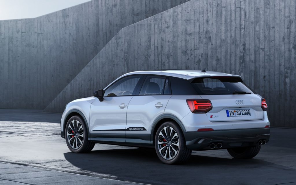 Analogamente a ogni modello della famiglia Audi S, nuova SQ2 si avvale della trazione integrale permanente quattro. Cuore del sistema è la frizione a lamelle idraulica a monte dell’assale posteriore, regolata elettronicamente, che ripartisce in modo variabile la coppia tra gli assali. Qualora si verifichi una perdita d’aderenza all’avantreno, la frizione a lamelle trasferisce in pochi millisecondi sino al 100% della coppia al retrotreno. Le sospensioni sportive portano in dote un ribassamento dell’assetto di 20 mm rispetto alla configurazione standard appannaggio di Q2. La vocazione high performance della vettura trova conferma nella specifica taratura dello sterzo progressivo, caratterizzato dalla servoassistenza e demoltiplicazione variabili. Il listino di nuova Audi SQ2 TFSI S tronic, le cui consegne avranno inizio da marzo, parte da 50.750 euro.