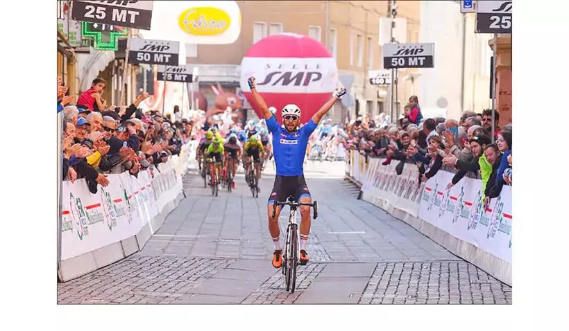 L’atleta veronese, qui in gara con la Nazionale italiana, ha conquistato il successo nella Fiorano – Sassuolo grazie ad un attacco nel finale che gli ha permesso, tutto solo, di tagliare il traguardo con tre secondi di margine sul gruppo, ridotto ad una trentina di unità. Un gruppo del quale faceva parte anche il talento australiano Lucas Hamilton, della Mitchelton Scott, che è così andato a conquistare definitivamente la maglia verde chiaro “E-R vince lo sport”.