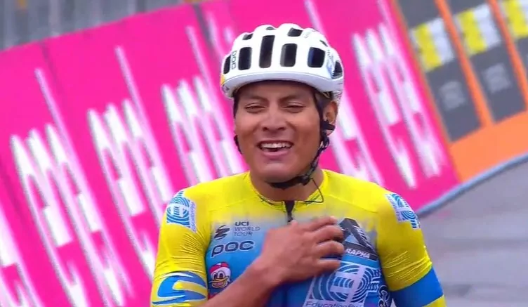 Il corridore ecuadoriano Jonathan Caicedo (EF Pro Cycling) ha emulato il suo connazionale Richard Carapaz, vincitore del Giro d’Italia 2019, andando a conquistare la terza tappa sull’Etna davanti ai suoi compagni di fuga Giovanni Visconti (Vini Zabu ‘- Brado – KTM) e Harm Vanhoucke (Lotto-Soudal). Geraint Thomas (Team Ineos Grenadiers) è arrivato al traguardo molto attardato (a 12’19”) dopo essere caduto nel tratto di trasferimento.