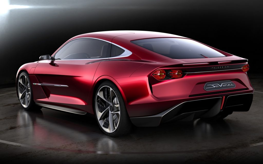 Nell’anno del cinquecentesimo anniversario della morte di Leonardo, Italdesign dedica al genio italiano l’ultima showcar nata a Moncalieri: la Italdesign DaVinci. DaVinci è un design concept per una vettura GranTurismo a trazione e alimentazione puramente elettriche, dall’anima sportiva ma caratterizzata da un’eleganza raffinata, sia per le linee esterne sia per quanto riguarda l’interno dell’abitacolo, che la posiziona decisamente all’interno del segmento premium. Lunga 4981mm e larga 2124mm, è in grado di ospitare comodamente quattro passeggeri; l’ampio passo da 2900mm e le dimensioni ridotte degli sbalzi ne confermano, anche a livello estetico, il carattere sportivo, enfatizzato da un’altezza da terra di appena 119mm.