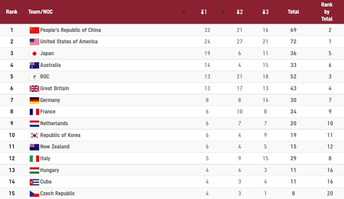 Il medagliere aggiornato delle Olimpiadi di Tokyo: