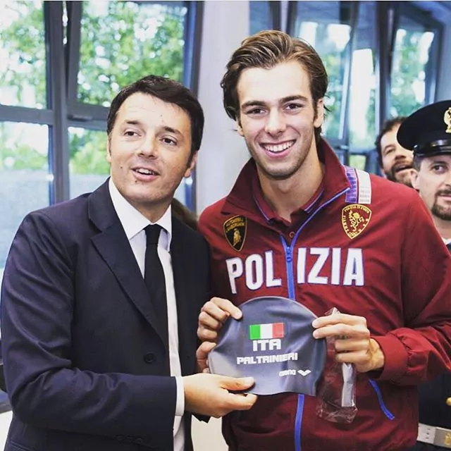 Il campione del mondo Gregorio Paltrinieri e Matteo Renzi insieme nella nuova piscina di Carpi