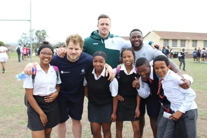 Rugby, una rappresentanza del Benetton in visita alla Bertram High School per un allenamento dimostrativo