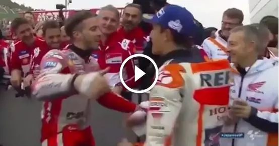 MotoGp – Pacche, risate e abbracci al parco chiuso di Motegi: Marquez e Dovizioso splendido esempio di sportività [VIDEO]