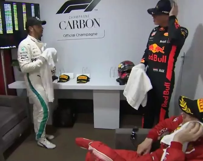 F1 – Siparietto tra Hamilton, Verstappen e Raikkonen nel retro podio: Max bacchettato da Lewis [VIDEO]