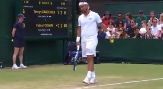 Fabio Fognini, down two sets to Sandgren, is NOT happy that #Wimbledon put him on Court 14.